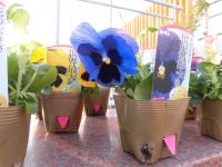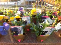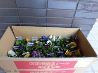 今日は、フマキラー株式会社様より、大輪の花が咲くパンジー「ボニータ」の苗を18個 頂戴いたしました。