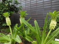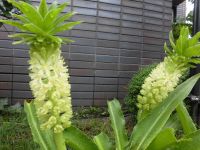 南アフリカ原産のユリ科ユーコミス属の多年草で、花茎の先端に星形の小花をたくさん咲かせ、その姿がパイナップルのように見えることからこの名前で呼ばれています。