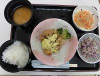 本日のメインは「チキン南蛮」です。鶏肉は柔らかく、口の中でほぐれます。