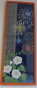 今は夏の絵柄で、色鮮やか朝顔や、花火、涼し気な風鈴が飾られています。