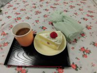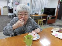 スタッフ、入居者様一同で Happy Birthday♪ を歌い、イチゴのショートケーキや、プリン、コーヒーを召し上がっていただきました。