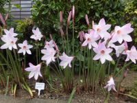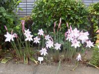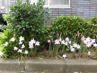 一昨日の雨と、温かな気候…いえ、暑いですね。のおかげで、花壇のレインリリーが一斉に花を咲かせております。