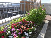 気を取り直して、屋上では日日草と百日草が綺麗に咲いています。