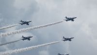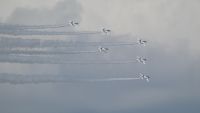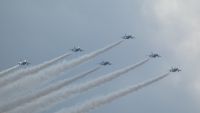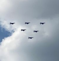 大きな音と共に綺麗な編隊を組んで飛んで行く姿に感動を与えていただきました。