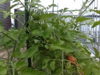 春に風にとばされ、茎がポッキリ折れたトマトは元気に育っております。