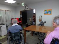 父の日レクと言うことで、普段はあまりマイクを握らない男性入居者様優先でカラオケ大会を行いました。
