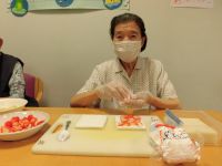 おやつ+レクリエーション=フルーツサンドウィッチ作りです\(^o^)/