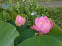 施設から歩いて数分のところにある「花 水 木の小径」には、この時期蓮の花が咲いています。