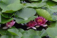 蓮の水辺のすぐ近くに、スイレンの浮かぶ水辺があります。