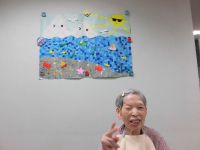 リビングに飾らせていただいておりますので、施設に来られた際は是非ご覧ください。
