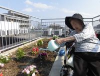 伸ばした葉っぱが窮屈そうに感じるので、そろそろ屋上の花壇にお引越しをします。