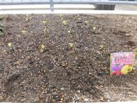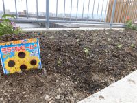 プランターに種まきをしていた、日日草とひまわりの苗が育ってきました。