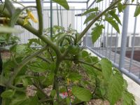 5月に植えたミニトマトもプリッとした小さな緑の実をつけています。