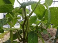 4月に植えた枝豆はふさふさのうぶ毛に被われた小さな実をつけています。