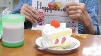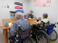 お歌とプレゼントを贈らせていただき、入居者の皆様とケーキを召し上がっていただきました。
