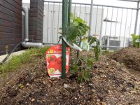 一週間前に強風で茎が折れて飛ばされていたトマト苗が復活(*^^)v