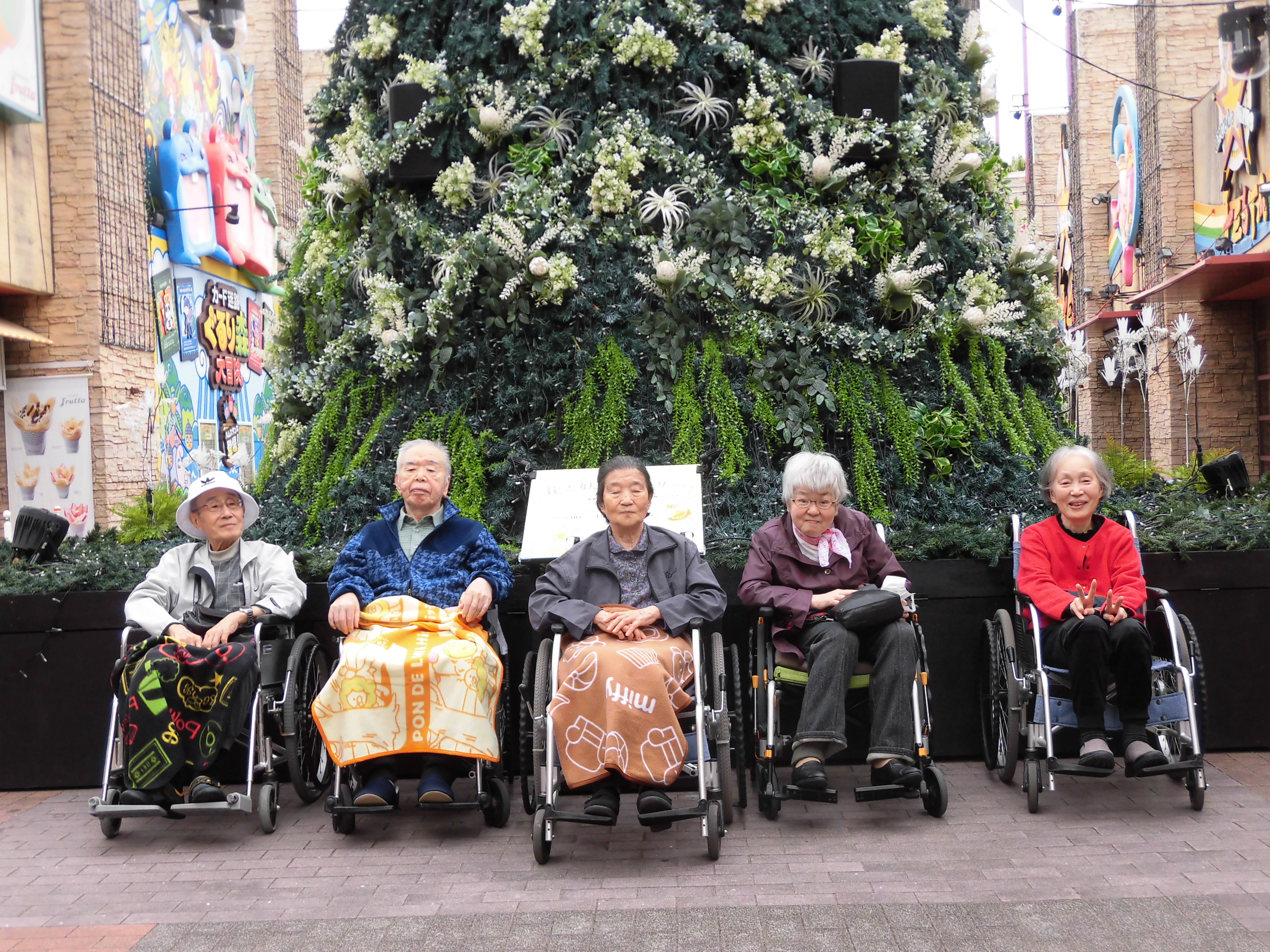 可愛かったので載せますね。遠足に参加された入居者様は、ここでカボチャを膝の上に乗せて車椅子で写真撮影をされていました。