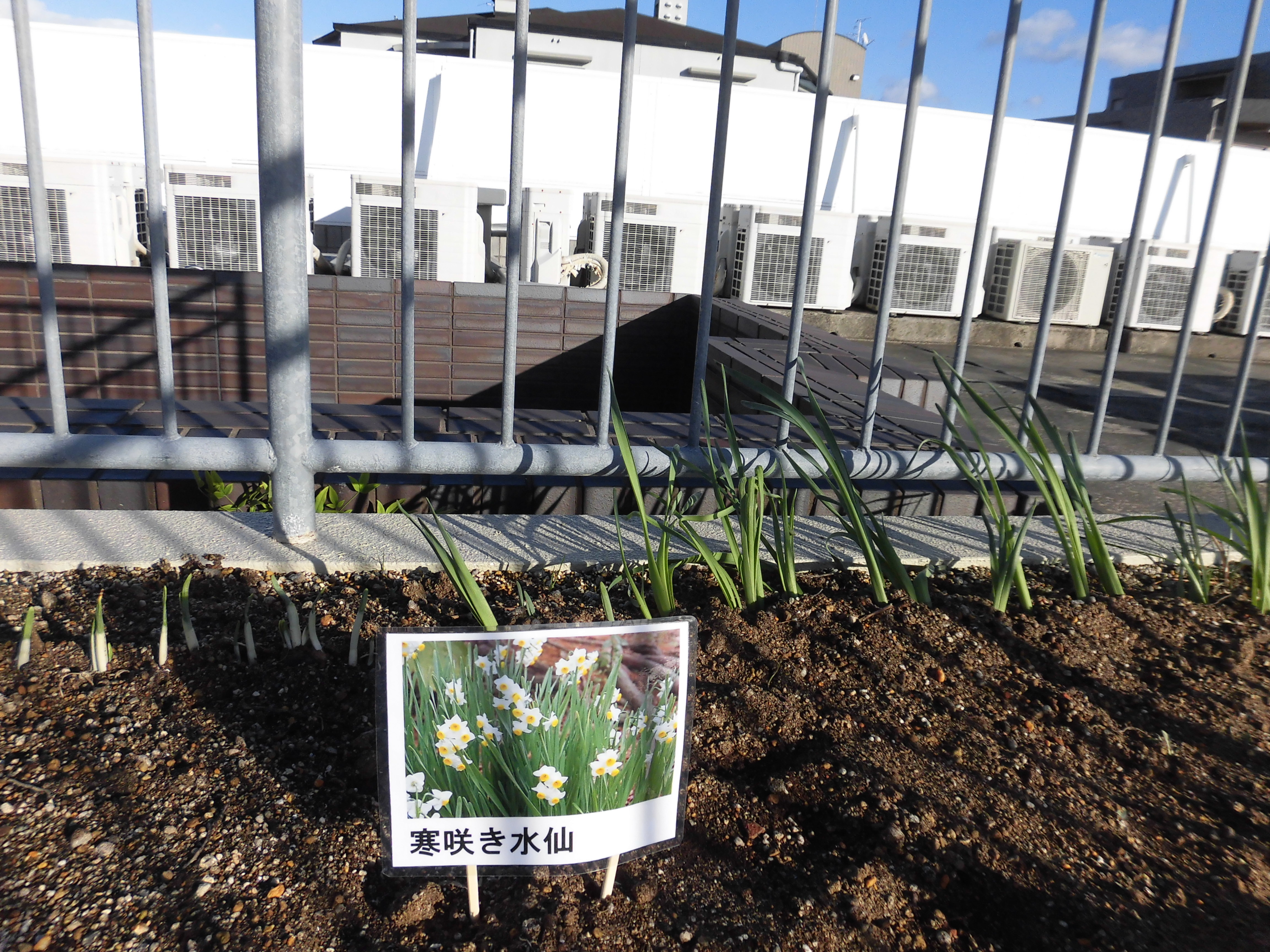 先日植えたパンジーの後ろに寒咲き水仙が仲間入りしました。