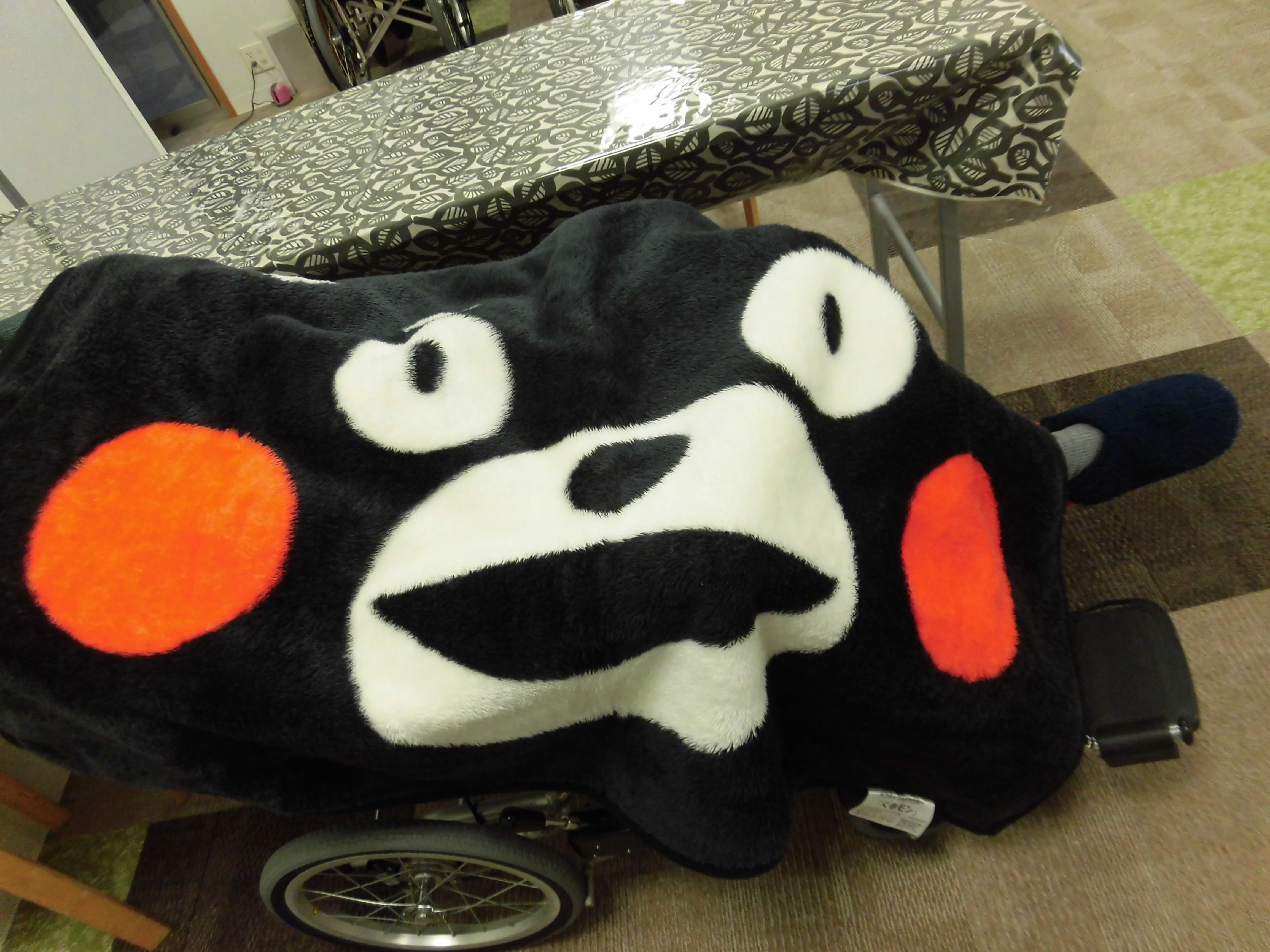 入居者様が愛用されているひざ掛け毛布が、くまモンでとても可愛いので、ブログに載せてみました。
