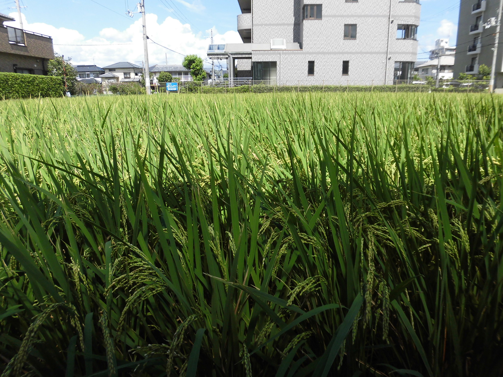 お隣の田んぼの稲を毎日見守っているのですが、ぐんぐん成長し稲穂が垂れ下がってくるようになりました。