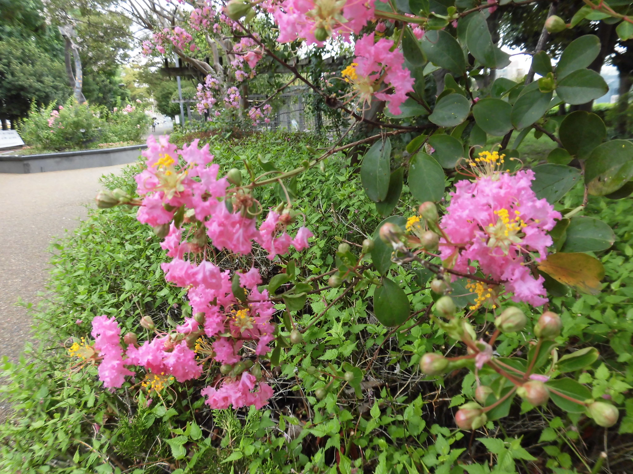 植物も夏の暑い時に咲いていたサルスベリ(百日紅)の花が枯れて丸い実をつけ始めました。この実の中に種が出来るようです。