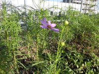 屋上に植えたコスモスが咲き始めました。