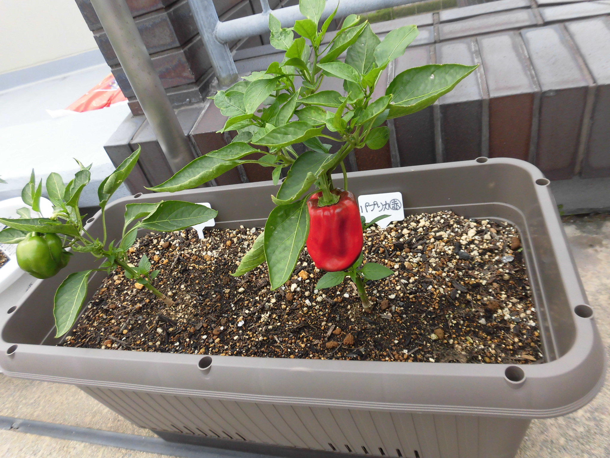 屋上の植栽を見に行ったら、やっとパプリカが赤く色づいて来た!と思って喜んでいたのですが、