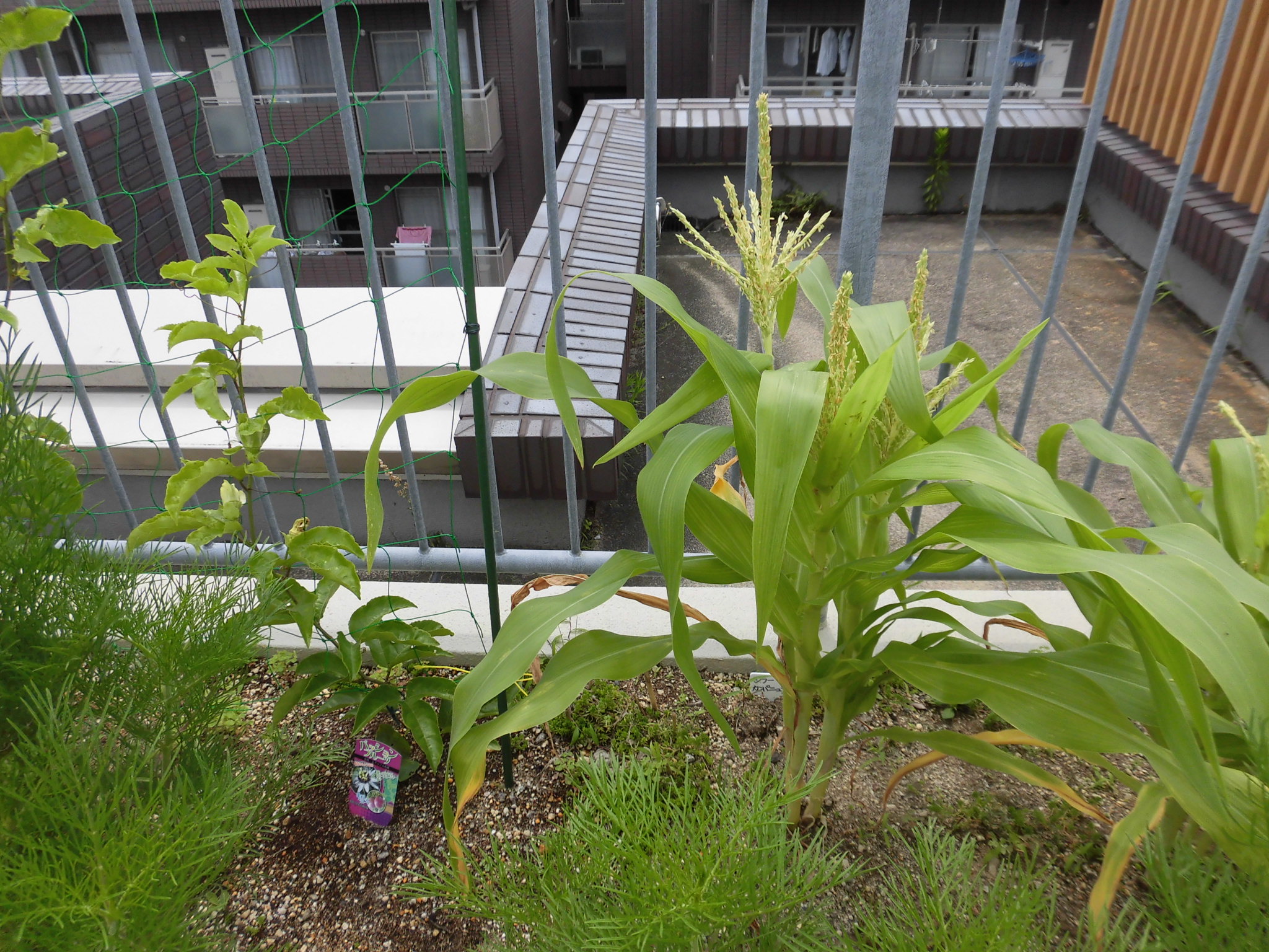 さて、先日から成長を見守ってきたトウモロコシが大きくなって来ました。