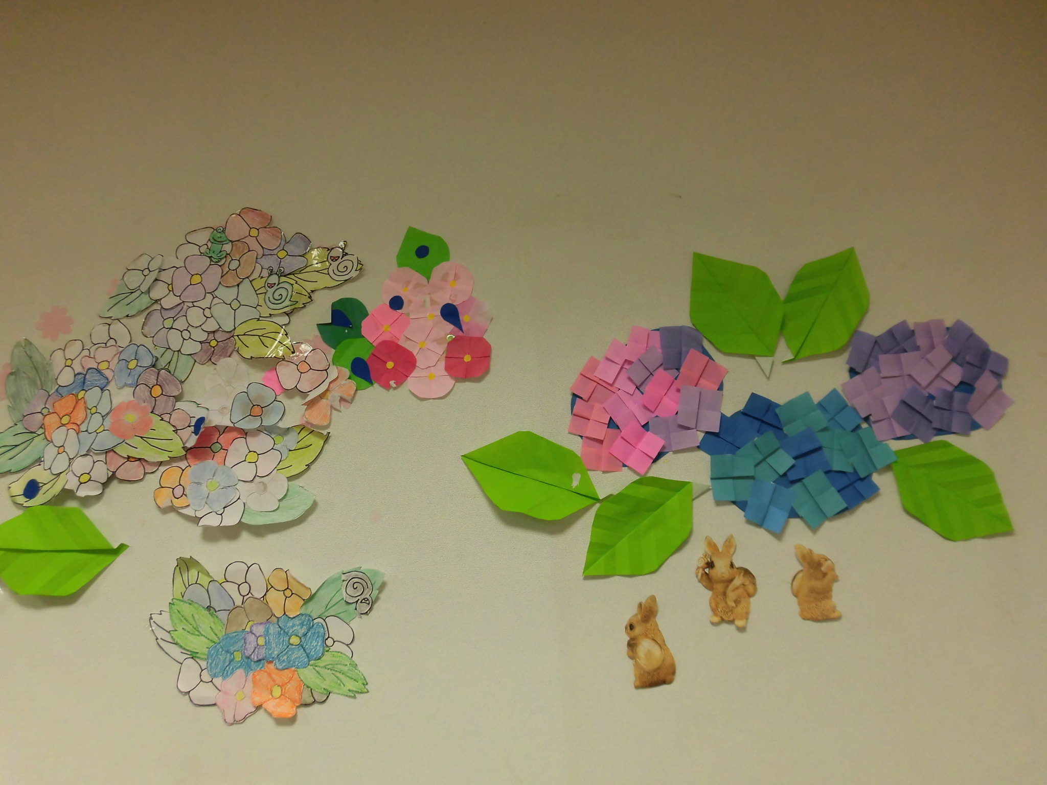 先日のレクリエーションで紫陽花の貼り絵をしました。