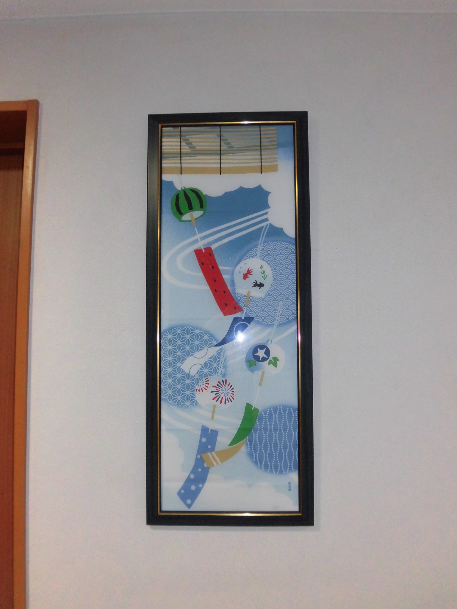 グリーンライフ茨木若園では各階のエレベーター横に季節の手ぬぐいを飾っています。