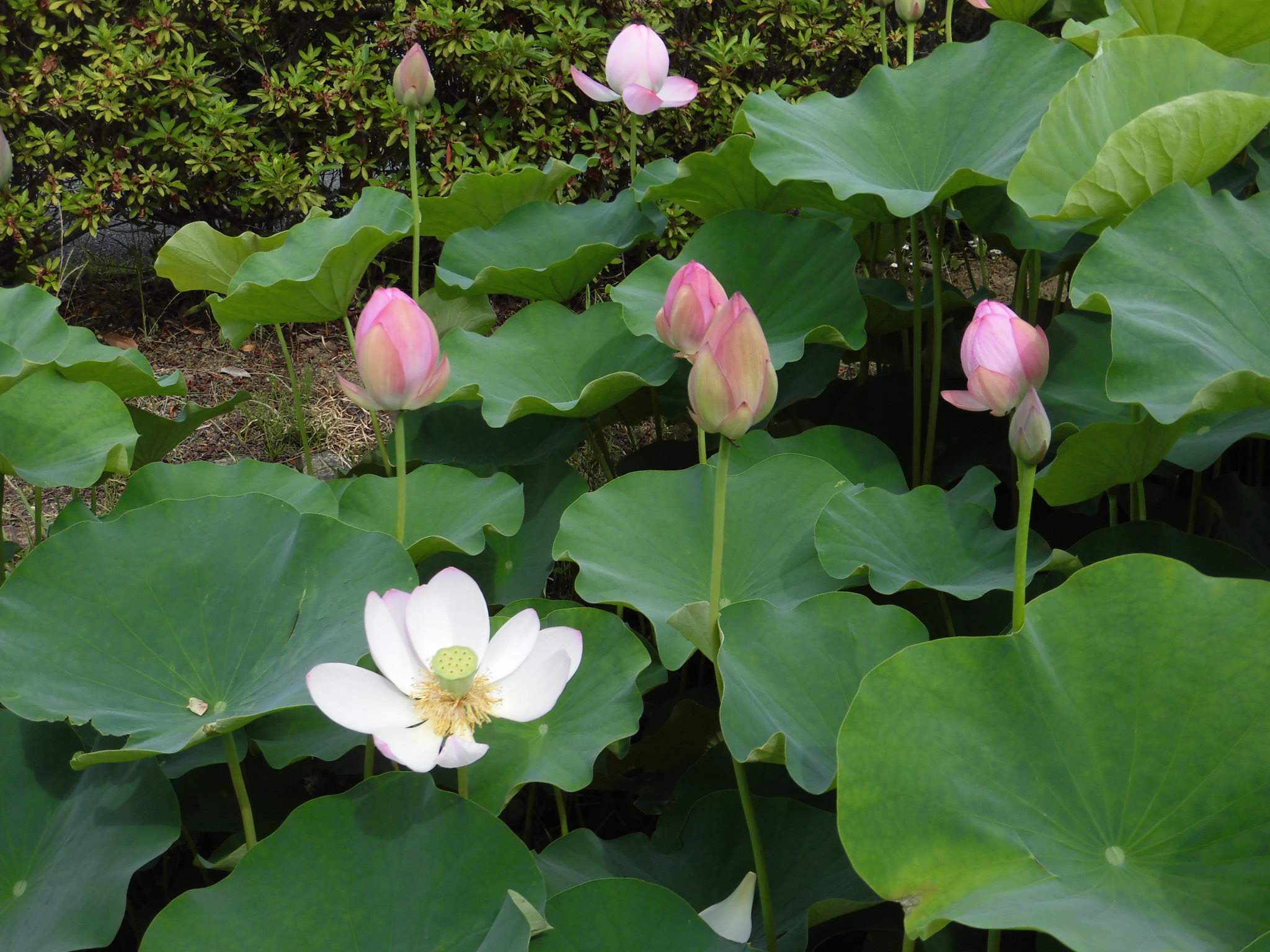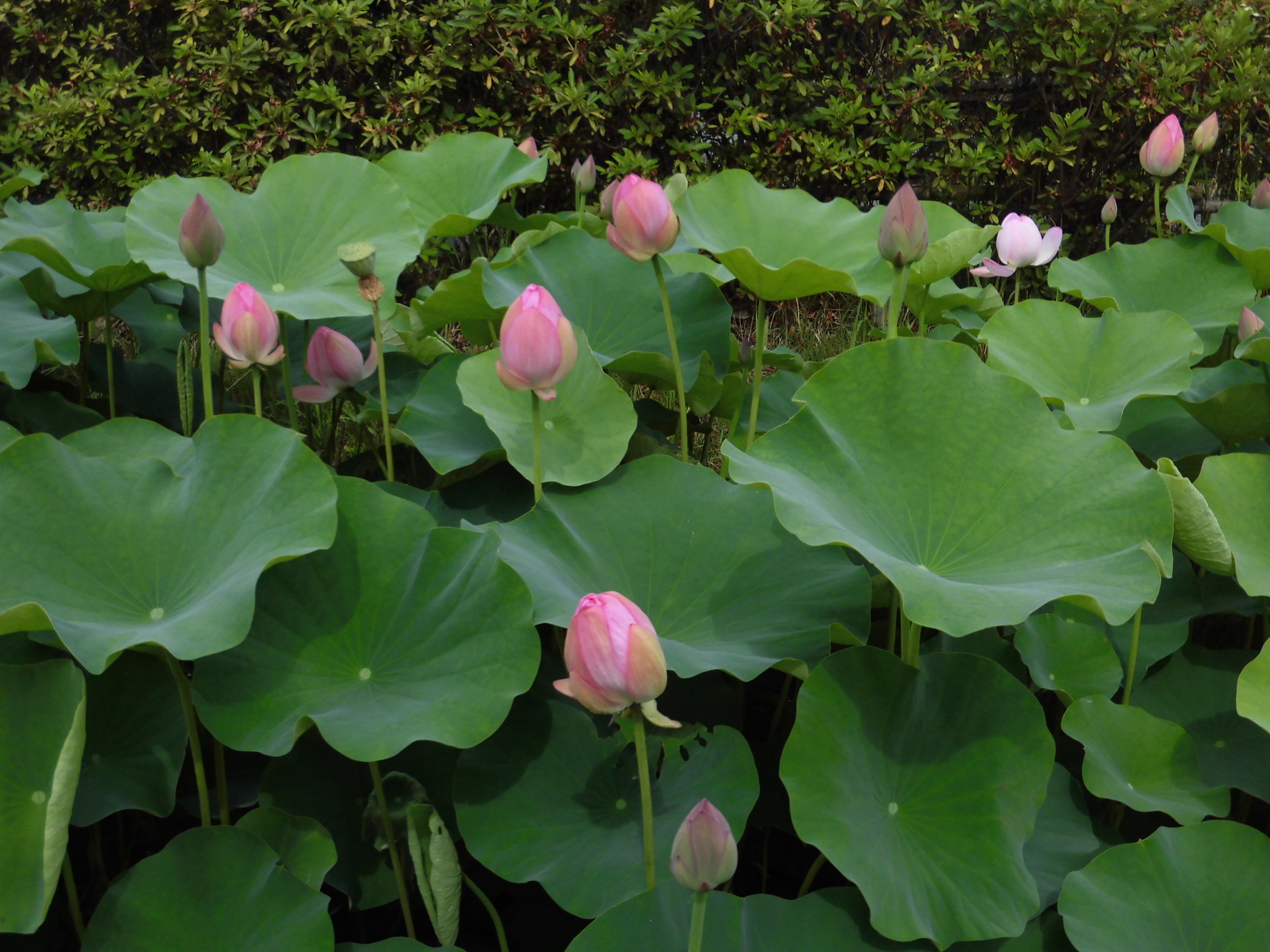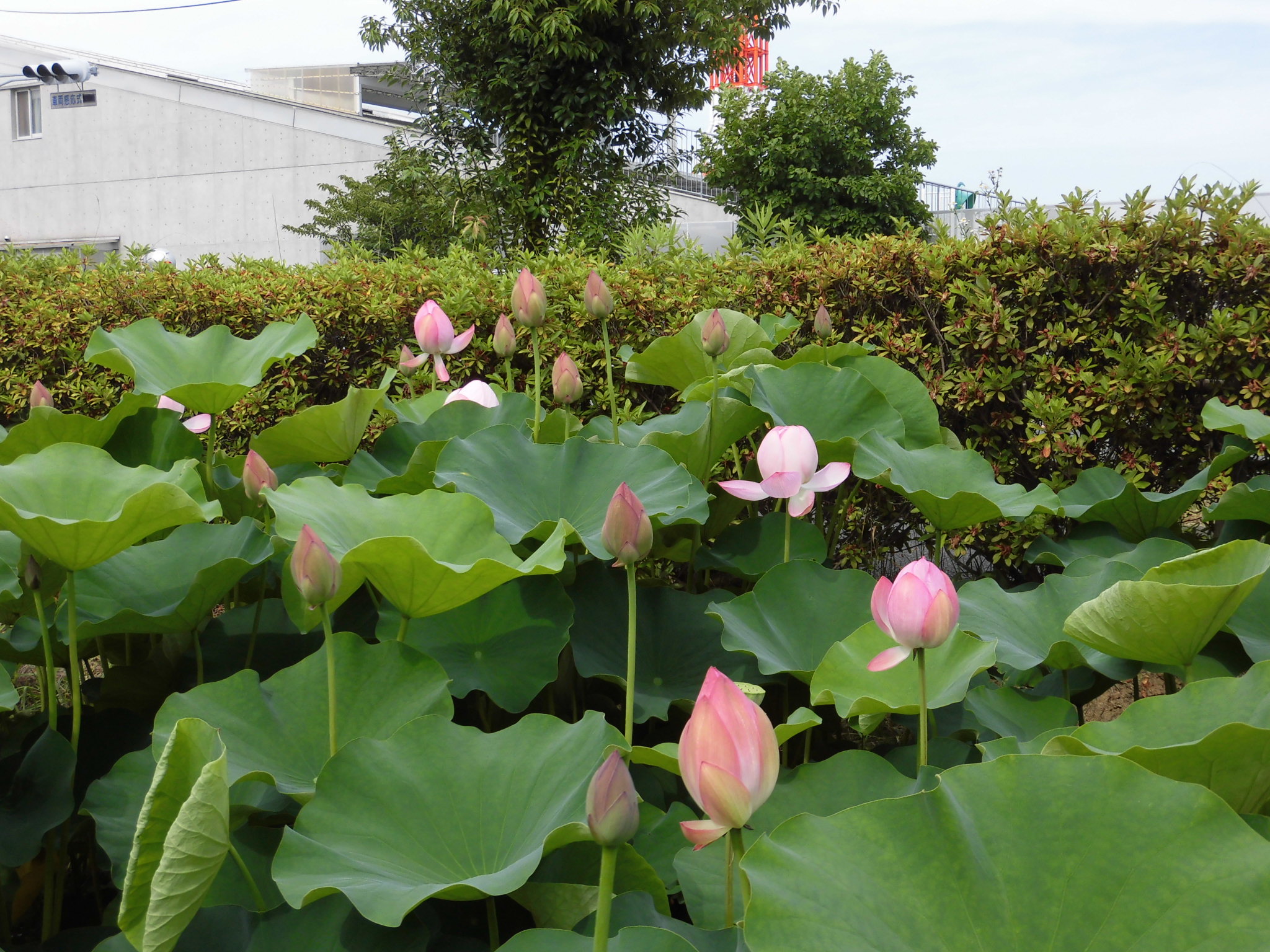 近隣の写真スポット、蓮の花のつぼみがいっぱいです。