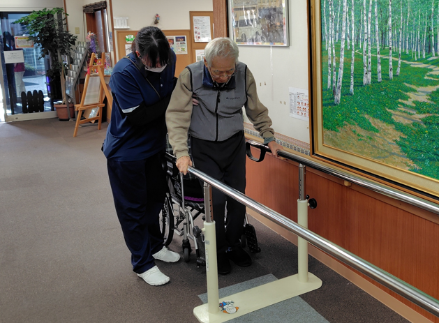 普段は車椅子をしている方ですが、立ち上がりやつかまり歩きをより安定して行えるように、筋力アップや並行感覚維持を目標として頑張られているようです。