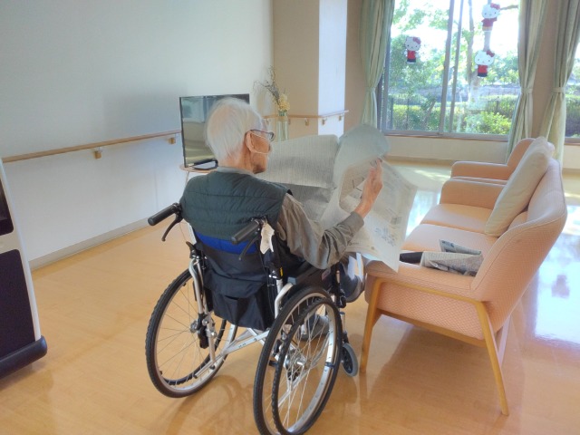 本日1階多目的ホールで読書をされている入居者様を発見(*”ω”*)