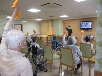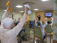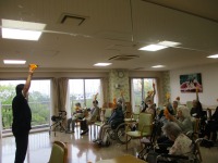 今日は14:00から1F多目的ホールで『音楽療法』を行いました♪ 先生をお招きして音楽に合わせてお歌を歌ったり、体操をしたりしてとても楽しいお時間でした(*´▽`*)