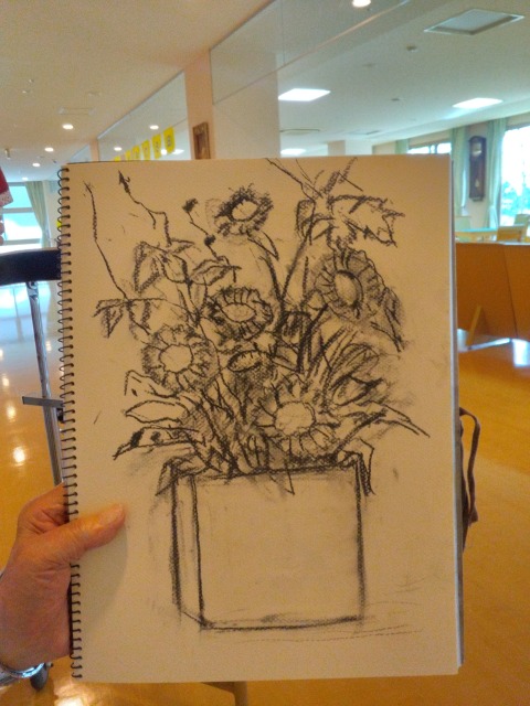 趣味でエントランスフラワーを描かれている入居者様の作品が完成しましたのでご報告致します!!