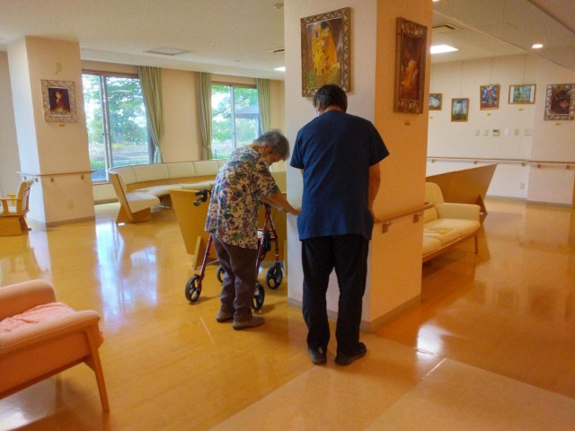 本日1階多目的ホールでリハビリをおこなっている入居者様をパシャリ📷