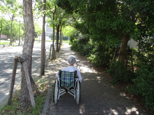 入居者様と「外の空気は気持ちいね」とお話をしながら散歩しました♬