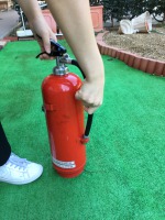 消防署からお借りした水消火器(訓練用)を