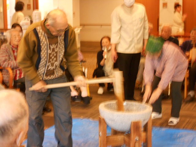 ご入居者様もお餅をついてくださり、昔