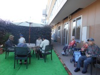 ご自身の足でしっかり歩かれお外に日向ぼっこ♪