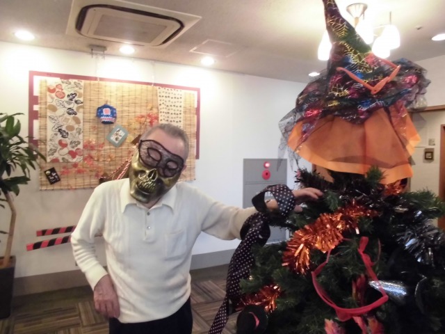 ハロウィン仕様のツリーと、ご入居者様と一緒に