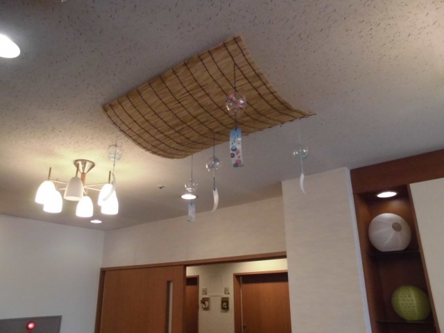 天井に風鈴がついていて、玄関のドアが