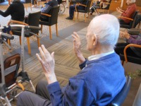 朝の体操は、立って行われるご入居者様も