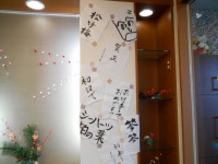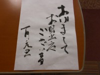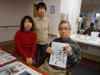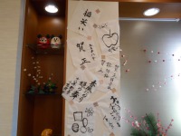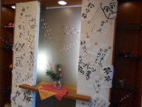 斬新な書初めですもの。斬新に飾りましょう♪ということでご入居者様に監督して頂きながらペタペタ…