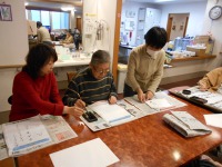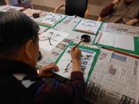 今日の『相談員による斬新書初め大会』(←辻SWを無理やり仕込みました。)では、お手本なし、思うまま気の向くままに筆を走らせる事がコンセプトの様で…