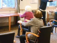 スポーツトレーナーの宮崎の声に合わせて皆さん上手にやっておられます。