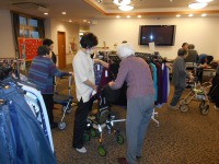 衣類の販売と、北海道物産展でご入居者様とご家族様と