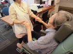 今回は看護師が、入居者様の手の上げ下げ、発声、手の曲げ伸ばしなど