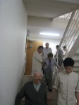 階段では皆様、付き添いのスタッフの手を借りて