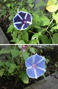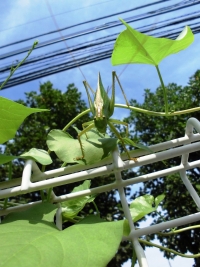 他の写真は敷地内の朝顔と今度は朝顔を食べているキリギリスです。